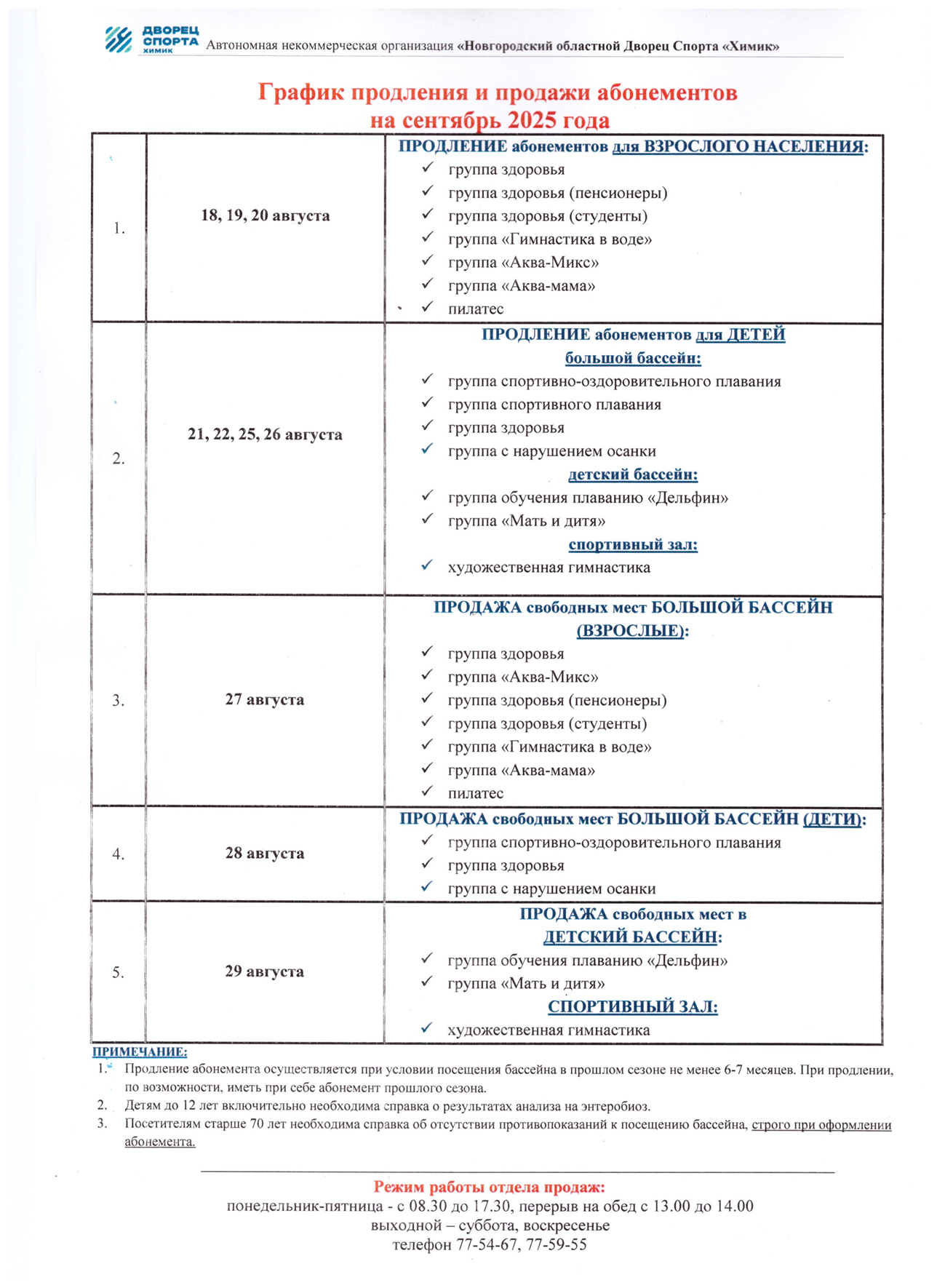 Расписание детского бассейна